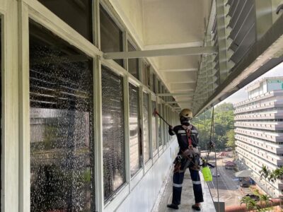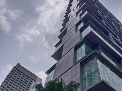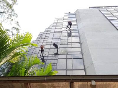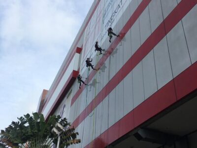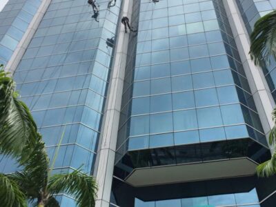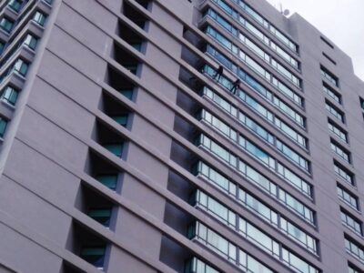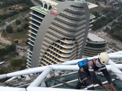 External Facade Initial Clean removing of adhesive and Cleaning of windows at Equatorial Hotel Kuala Lumpur.