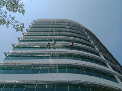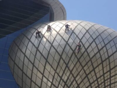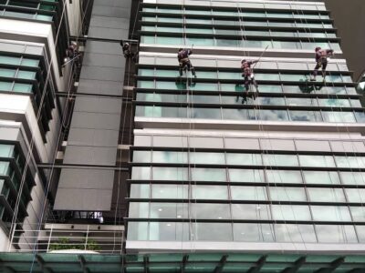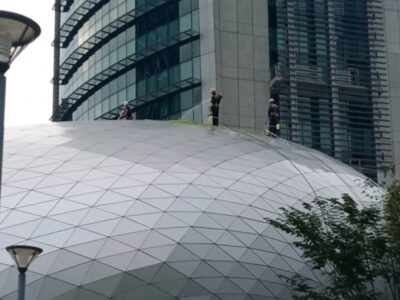 KLCC Convention Centre Vertical Facade cleaning with ETS Solution and Pure Water.